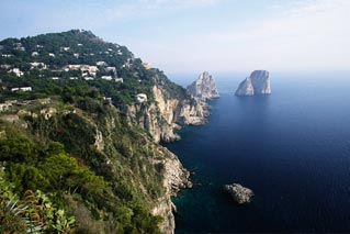 水中翼船でカプリ島へ(約 40' ) 。 チェアリフト(フニクラ)又はバスでカプリ港からカプリ広場まで。 市内観光。ショッピング時間。