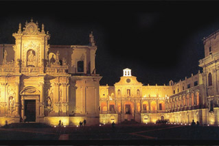 ブロンズ色のバロックの街、レッチェを訪れます。華麗なバロック様式の街レッチェは、ヨーロッパの中でも有名でイタリアの他の地方でも見い出だすことはできません。レッチェの歴史的旧市街はおびただしいバロック建築の教会群ゆえに南のフィレンツェとも呼ばれています。ツアーでは華麗な聖堂サンタクローチェ教会、ドゥオーモ(司教座教会)、ドゥオーモ広場、と聖オロン(レッチェの守護聖人)広場から望まれるローマ時代の野外劇場跡などを見学します。さらにレッチェの伝統工芸である紙細工カルタペスタの工房を訪ねます。